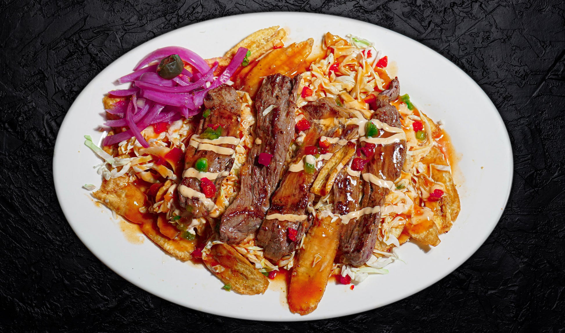 "¡Delicioso platillo "Carne Asada Con Tajadas" con carne jugosa y tierna servida con tajadas crujientes! ¡Una explosión de sabores en cada bocado! Perfecto para compartir con amigos y familiares o para una cena romántica. No te quedes sin probarlo!"